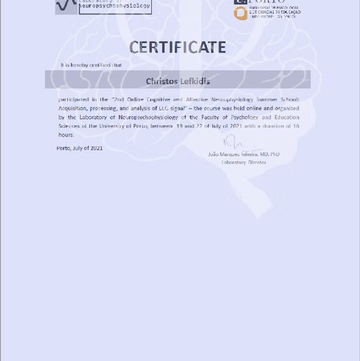 2nd Online Cognitive and Affective Neurophysiology Summer School: Acquisition, processing, and analysis of EEG signal” I 19-22/7/21 I Total of 16 hours