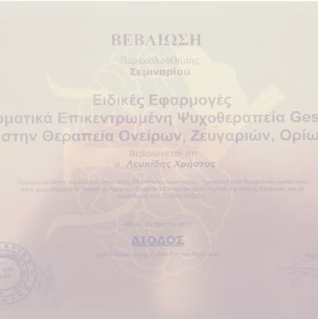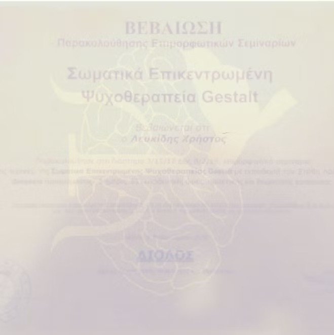Σωματικά Επικεντρωμένη Θεραπεία Gestalt I 3/11/2017 -8/2/2019 I Total of 85 hours