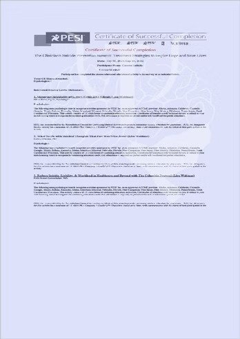 Certificate for The Clinician's Suicide Prevention Summit: Treatment Strategies to Inspire Hope and Save Lives I 9-10/9/21 I Total of 50 hours